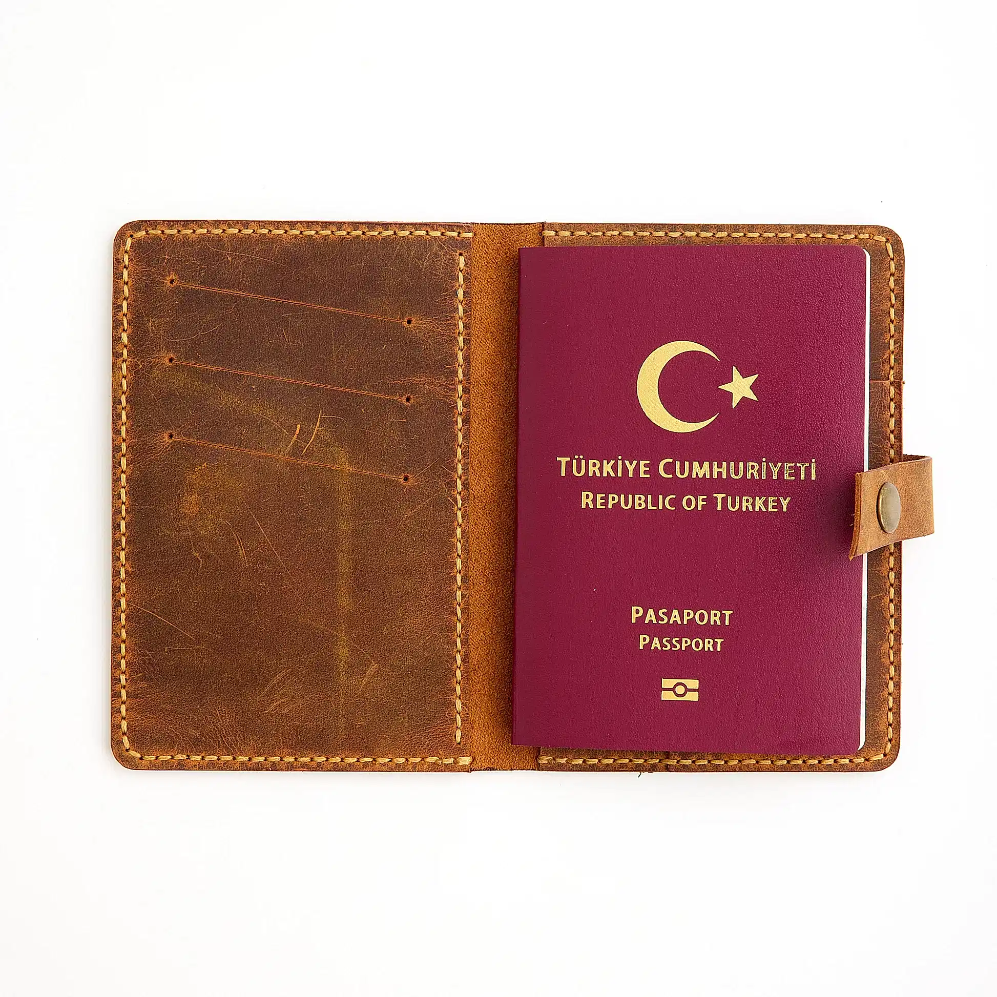 Galata Leather’ın el yapımı pasaport kılıfı, sadece seyahat ederken kullanacağınız bir aksesuar değil, dünyanın dört bir yanında yanınızda taşıyacağınız bir yol arkadaşıdır. Yüksek kaliteli dana derisinden üretilen bu kılıf, her dokunuşta size sıcak bir güven hissi verir, pasaportunuzu korurken stilinizi de öne çıkarır. Yolculuğa çıkarken her ayrıntının önemli olduğunu biliyoruz; bu yüzden size sadece işlevsel değil, aynı zamanda zamansız bir şıklık sunuyoruz. Zamanla derinin kazandığı doğal doku, her yolculukta kılıfınızı daha da özel ve kişisel hale getirecek. Uçuş kartlarınızı, notlarınızı ya da ufak bir anıyı içine koyun, her seyahatinizde bu kılıf sizi bir adım ileri taşısın.